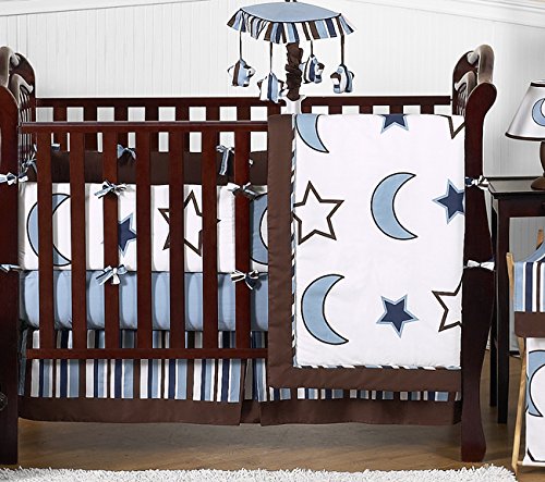 -. Title : Sweet Jojo Designs Modern Blue and white Stars and Moons Baby Boy Bedding 9pc Crib Set