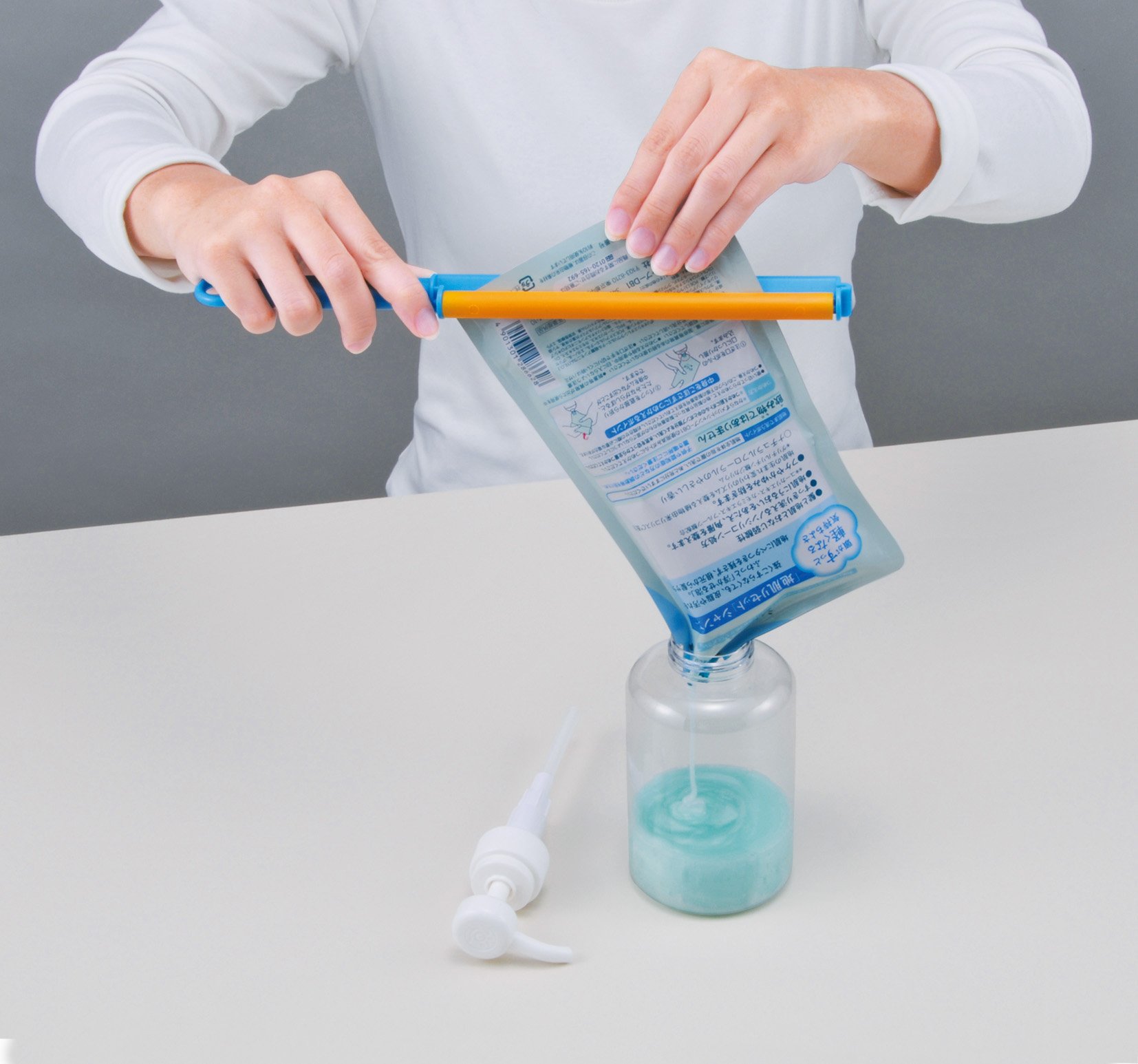 Squeeze the refill pack, twist your wrist slightly, squeeze out cleanly until the end by lowering it while adjusting the pinching force.