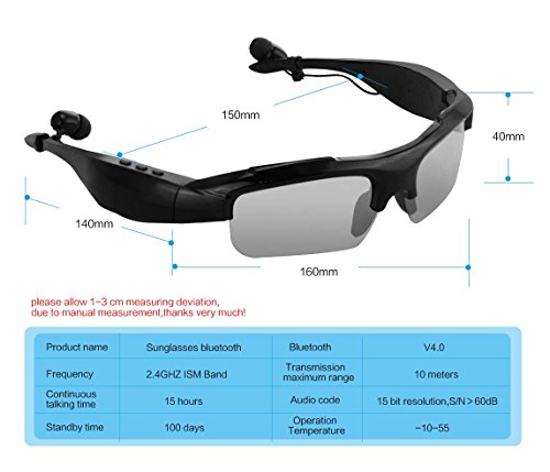 -. Binding : Wireless Phone Accessory -. Brand : E-More -. Feature : Easy to operate, with Play and Stop button, Volume control button. / Bluetooth V4.0, support hands-free profiles. Hands free answer call when you are driving or riding a bicycle. It can pair with devices up to 10 meters away. / Enjoy music in the sun without disturbance and protect your eyes and eyesight. Enable clearer sound during calls and while listening to music. / Fashionable design with foldable eyeglasses. Built-in rechargeable lithium battery, comes with Mini USB cable. / Not only can answer the call, but also used to listen music. Compatible for iPhone/Nokia/HTC/Samsung/LG/Moto/PC/iPad/PSP and other Bluetooth devices. -. Label : E-More -. Manufacturer : E-More -. PackageQuantity : 1 -. ProductGroup : Wireless -. ProductTypeName : WIRELESS_ACCESSORY -. Publisher : E-More -. Studio : E-More -. Title : E-More Sport Riding Eyes Glasses Wireless Bluetooth 4.0 Stereo Headset Driving Call Music Handsfree Smart Sunglasses for Android IOS Smartphones and All Device with Bluetooth