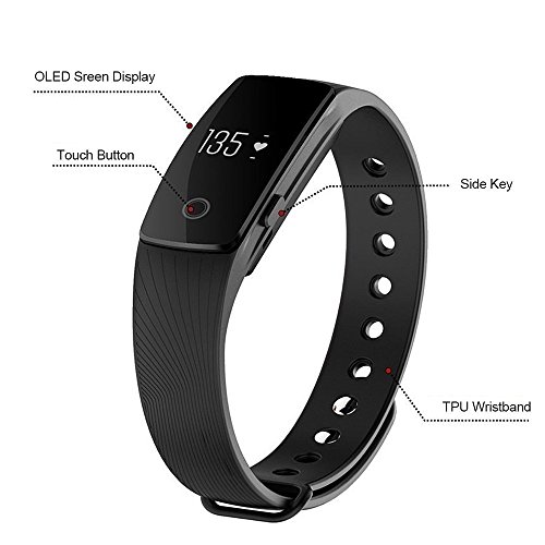 -. Feature : Continuous, accurate heart rate monitoring, every beat counts, no chest strap required / Track steps, calories, distance, motivates you to be active throughout the day and monitor sleep at night / Oled Touch screen, check data right on your wrist, support sedentary remind and calls message alert / Personalized app, support 12H/24H time, imperial/metric measurement, 10 alarm alert per day / App "VeryFit 2.0", works with Android 4.4, IOS 7.1 or newer os, easy pairing without register