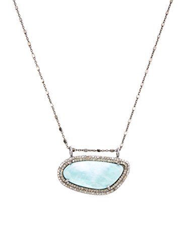 Larimar slice pendant surrounded by .5 carats of diamonds set in black rhodium silver setting