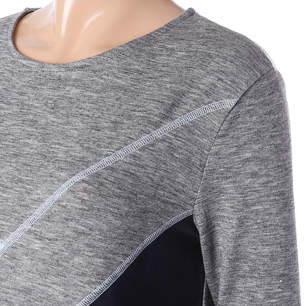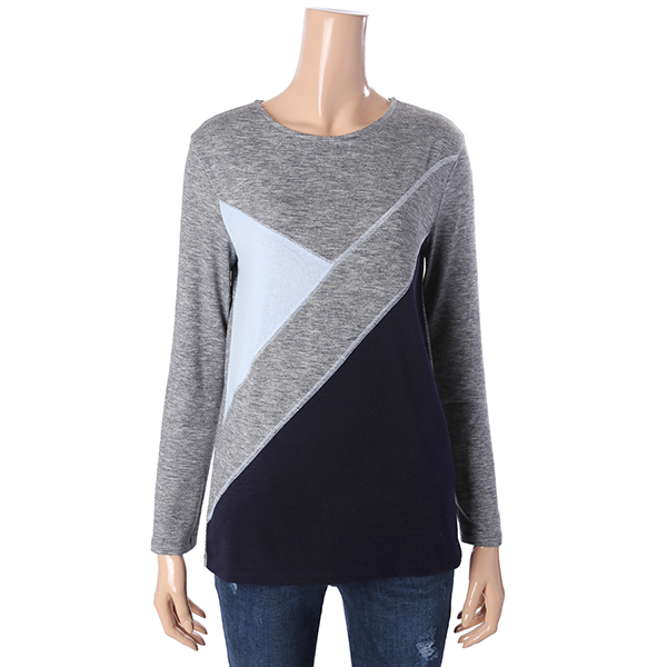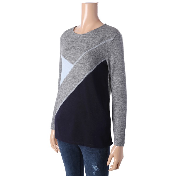 - 라운드넥 사선 칼라블럭 포인트 티셔츠 입니다.