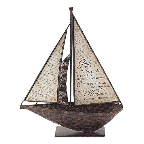 Serenity Prayer Parchment Paper 10.5 x 9.5 Metal Table Top Sailboat Figurine Decoration