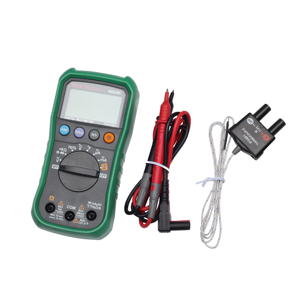 | OperatingMode:asthedescription DisplayType:DigitalDisplay OperatingTemperature:-20-10000℃ MeasuringInductanceRange:asthedescription MeasuringCapacitanceRange:5nF/50nF/500nF/5uF/50uF/100uF MeasuringVoltageRange:400mV/4V/40V/400V/600V DIYSupplies:Electrical MeasuringCurrentRange:400uA/4000uA/40mA/400mA MeasuringResistanceRange:200Ω/2KΩ/20KΩ/200KΩ/2MΩ Dimensions:150mm*74mm*41mm ModelNumber:MS8239C BrandName:MASTECH |