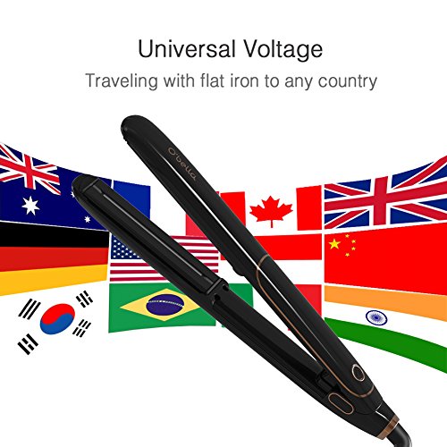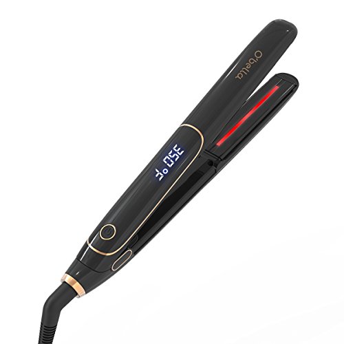 O'BELLA INFRARED HAIR STRAIGHTENER IRON, 1 INCH CERAMIC TOURMALINE FLAT IRON WITH EXTRA LONG FLOATING PLATE, DUAL VOLTAGE FOR TRAVEL, BLACK