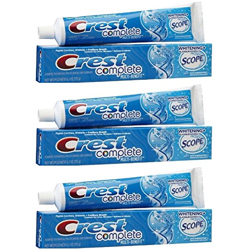 Crest, Complete, Whitening + Scope, Cool Peppermint Toothpaste, 6.2oz Tube (Pack of 3)