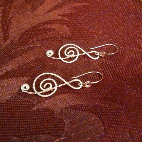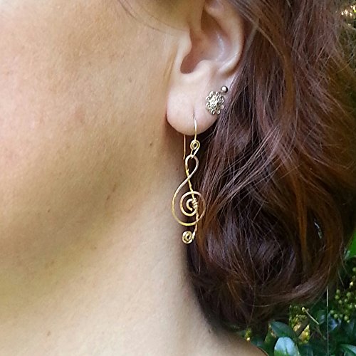 -. Title : 14k Goldfilled Treble Clef Earrings on Fancy Goldfilled Hooks Handmade