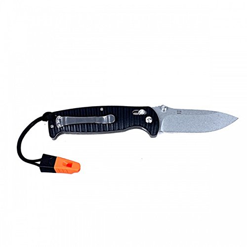 Ganzo G7412P-BK-WS Black Folding Knife With Whistle Ribbed Handle G10 Grey Blade 440c Lock Axis