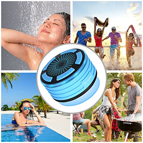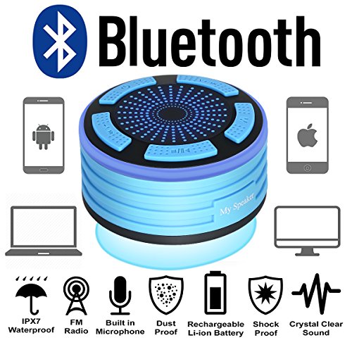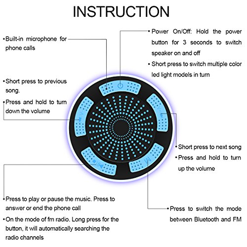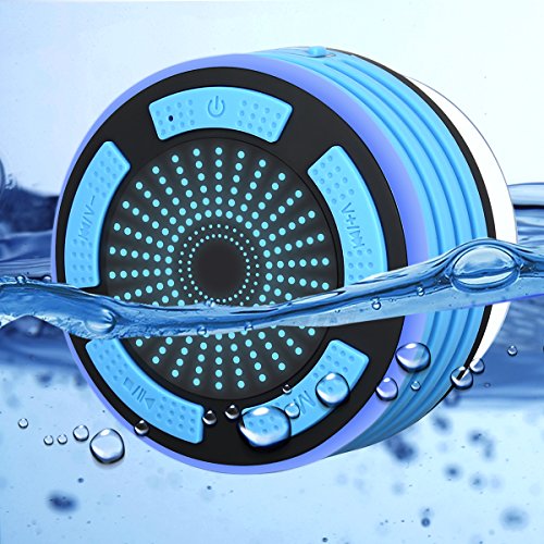 Shower Speaker - Certified Waterproof Wireless 4.0 Speaker – with HD Sound and Bass, FM Radio, Colorful LED Effect, Strong Adhesion, Hands-free Calls for all Bluetooth Device
