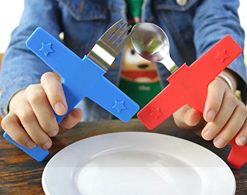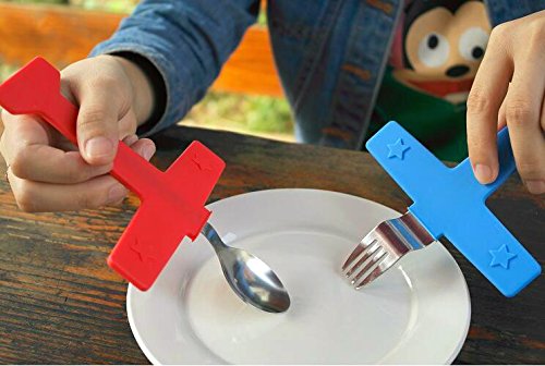 -. Title : YIK'S GO Airplane Aircraft Kitchen Utensils Soup Spoon Rice Scoop Meal Spoon Spaghetti Fork(Blue+Red,1 set of 2)