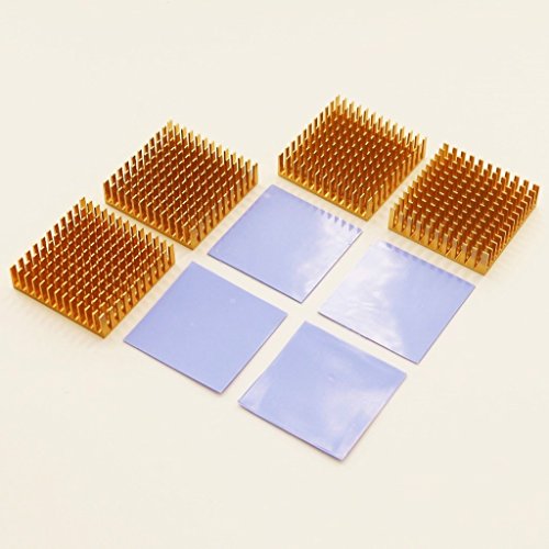 - BNTECHGO® 4 Pcs 40mm x 40mm x 11mm Golden Aluminum Heatsink Cooling Fin + 4 Pcs 40mm x 40mm x 0.5mm Silicone Based Thermal Pad