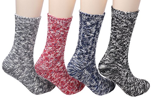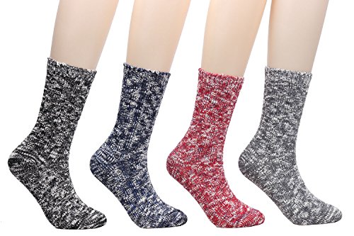 -. Feature : Combed Cotton,Wool,Nylon, Spandex,Soft, Comfortable, Warm, Durable. / Fit US Women 5-10(Free Size 21 To 26cm),They Are Stretchy But Not Loose Or Skid. / 4 Colors: Each Package Including 4 Packs Of Attractive Colors Crew Socks.The Unique Style And Colors Of Socks Can Be Matched With Any Clothes You Choose To Wear Today. / The Most Common Length Of Socks, These Warm Socks Hit About Mid Calf, Which Most People Prefer For Their Day To Day Lives. / Easy-Matching Colors, Coordinate With Whatever You'Re Wearing. Suit For Many Occasions, Such As Daily Life And Outdoors, Office, School, Hiking, Sport, Home, Fall, Winter.