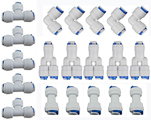 Neeshow 1/4" OD Quick Connect Push In to Connect Water Tube Fitting Set Of 20 (Y+T+I+L Type Combo)