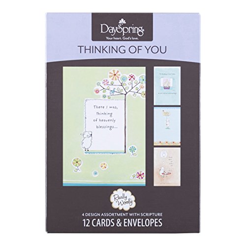 DaySpring Thinking of You Boxed Greeting Cards w Embossed Envelopes - Really Woolly, 12 Count