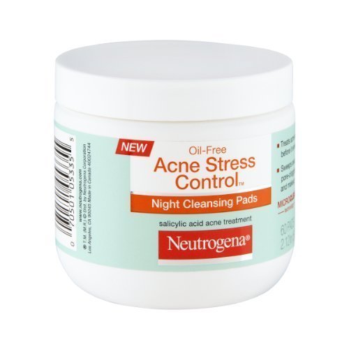 Help treat acne before it emerges with Neutrogena Oil-Free Acne Stress Control Night Cleansing Pads. Designed for acne-prone skin, these easy-to-use pads are ideal for wiping away pore-clogging oil, dirt, and makeup at night before bed. This formula contains maximum strength salicylic acid and Microclear technology, a powerful technology scientifically shown to boost delivery of salicylic acid to the source of breakouts. The formula penetrates deep into the skin to fight acne and help prevent future breakouts. Use in place of a regular rinse-off cleanser at your bedside or whenever you can't get to a sink. Ideal for fast and easy cleansing at night. Salicylic acid treats and helps prevent breakouts. Wipes away pore-clogging dirt, oil, and makeup. Helps treat acne before it emerges. Microclear technology shown to boost delivery of acne medicine. #1 Dermatologist Recommended Acne Brand. Formulated for acne-prone skin. 60 pre-moistened cleansing pads.