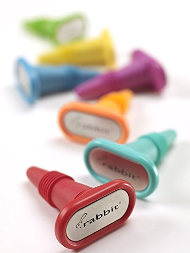 Product Description Add some fun to your fridge or countertop Rabbit Wine/Beverage Bottle Stoppers What better way to unwind after a long day at the office than enjoying a nice glass of wine? But then you are left with the rest of the bottle and wondering, how do you preserve that freshness? Our soft, cushy wine bottle stoppers provide an air-tight seal that are perfect for sealing wine. EASE OF USE Part of the Preserve line, the Rabbit Bottle Stoppers are not just for sealing wine. They are made of rubber and stainless steel so their soft texture allows them to provide an air-tight seal in all bottle sizes including wine, champagne, soda, and oil and vinegar. Clean up is easy - these bottle stoppers are dishwasher safe and reusable. WHAT YOU GET You will receive an assortment of four bright, fun colored wine stoppers. 0