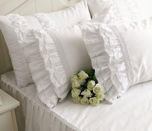 DIAIDI Home Textile,Luxury Lace Ruffle Pillowcases,Beautiful White Pillowcases,Pillow Case,Pillow Cover,19''29'', 1 pair (2)