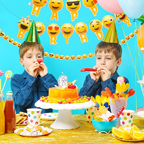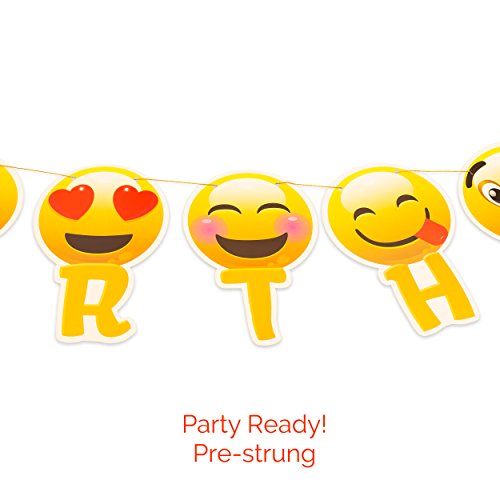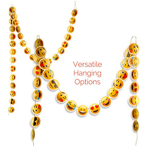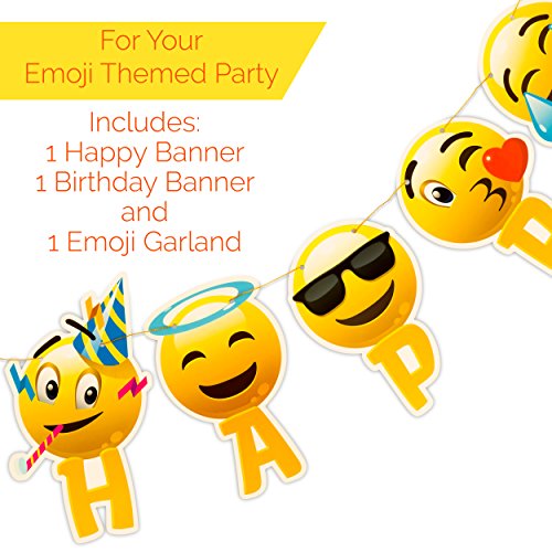 -. Feature : BIRTHDAY DECORATIONS: Gorgeous party decorations easy to use ,you can hang the banner and paper circles garland on the wall, ceiling , on a tree,etc.,Great for girl or boy birthday party decorations. / EMOJI PARTY BANNER: 13 card-stock pennant flags in 2 separate gold strands. "HAPPY" measures 3 feet, "BIRTHDAY" measures 5 feet, The letters are P.R.Inted on 6 ¾ x 9.5 inch colored card-stock and is pre-strung with gold ribbon. / EMOJI GARLANDS: Colorful Garland string is 10 feet long and can be cut to your desired party decoration length. Hang the garland along the wall as a backdrop to the cake table, string from the ceiling or lay flat on the table for a confetti look. Each garland circle measures 2 x 2 inches. / EMOJI THEME PARTY: Use it for your emoji themed parties, enjoy our unique happy birthday emoji faces. / GUARANTEE: We stand by our banners with a 100% money back guarantee. If this happy birthday banner set does not make you and your loved ones happy, then you get your money back.