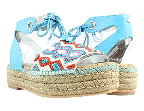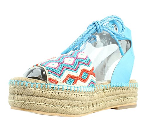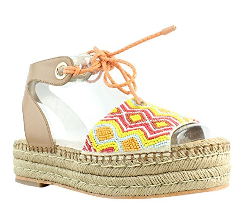 Product DescriptionBeaded flatform espadrille sandal with braided ankle tie0