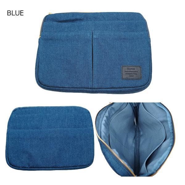| 国産デニムで仕立てたタブレットスリーブ。 |