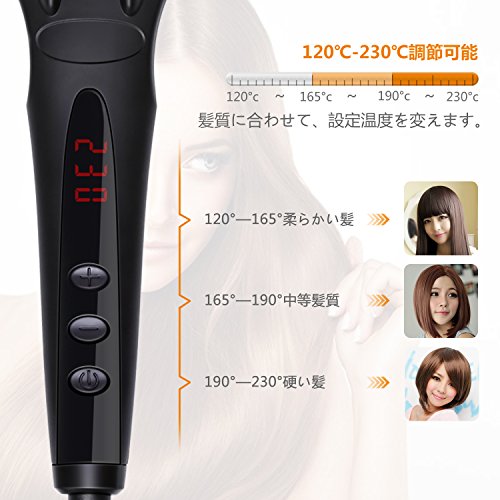 【온도 조절】최고 온도는 프로 사양의 230℃나오고, 온도가 5℃씩,120℃부터 230℃까지 조절 가능합니다.LCD온도 디스플레이가 있고, 온도가 잠거지는 기능도 붙어 있으므로,온도 조절을 알기 쉽고, 온도가 도중으로 바꾸기도 하지 않습니다.발질이나 스타일링 에 따라,온도를 설정 하는 것 를 할 수 있습니다.