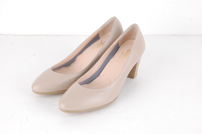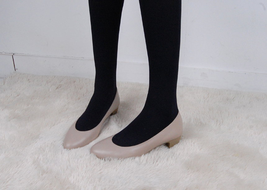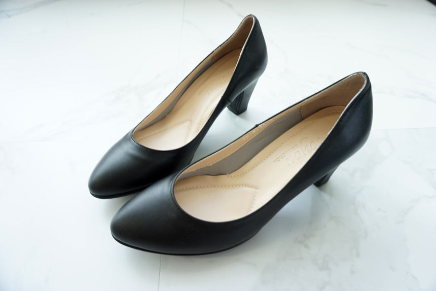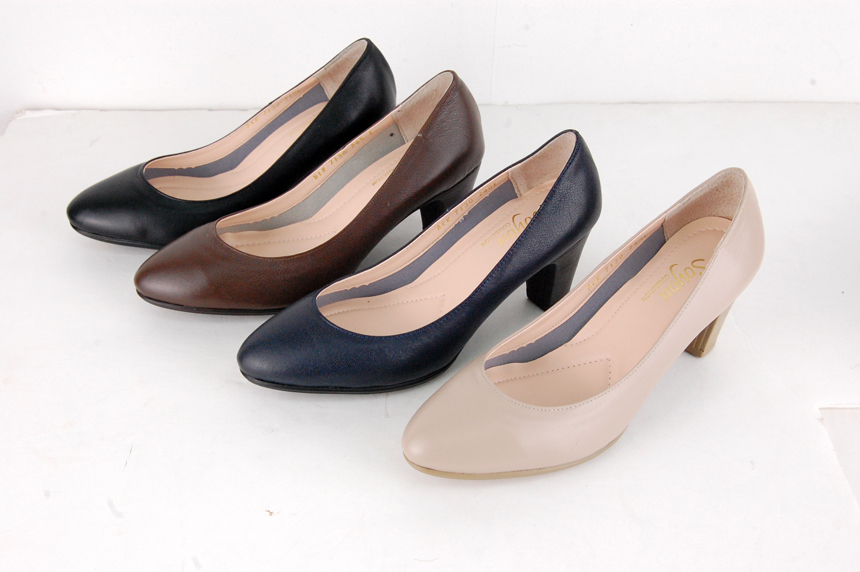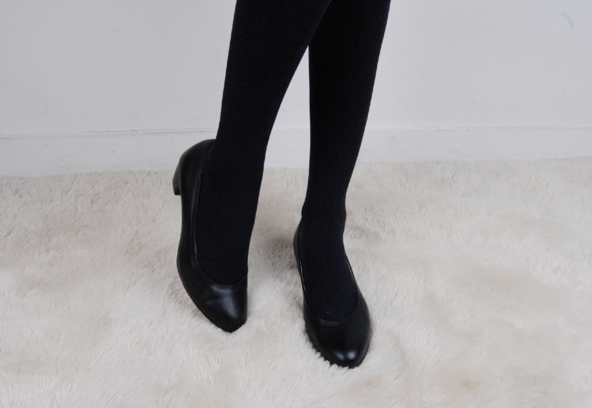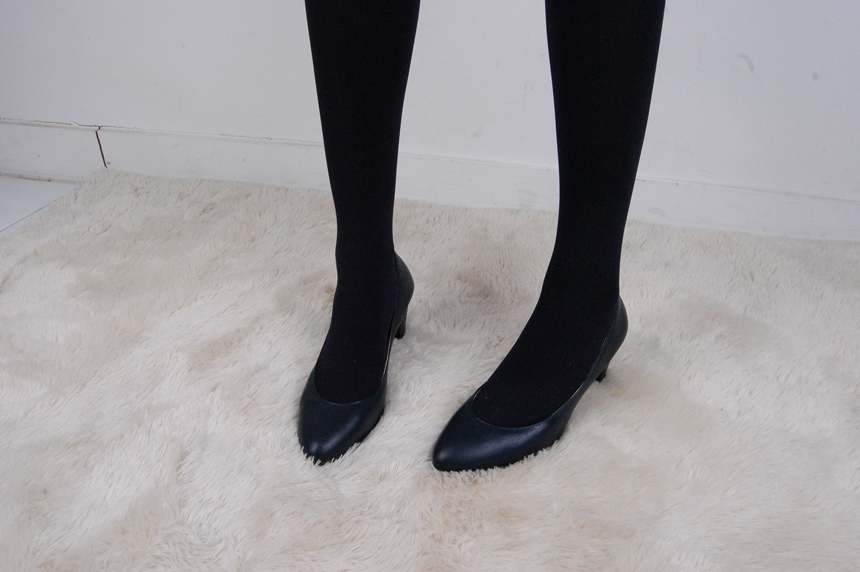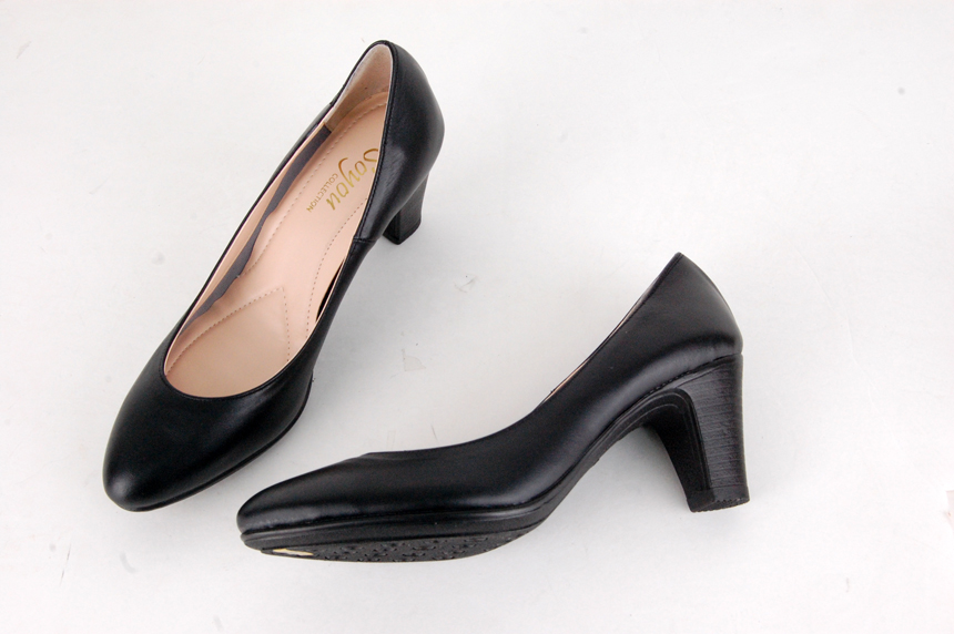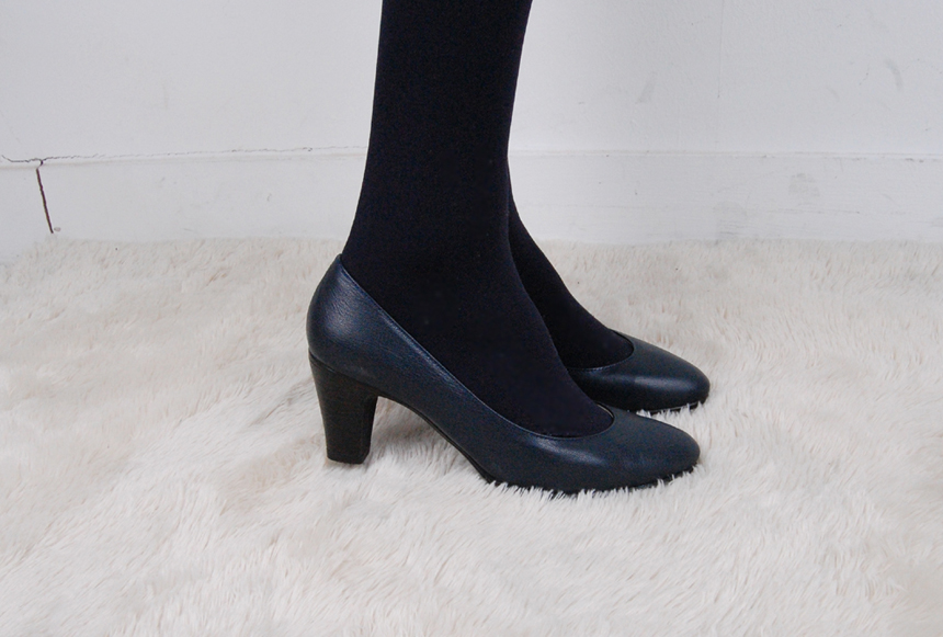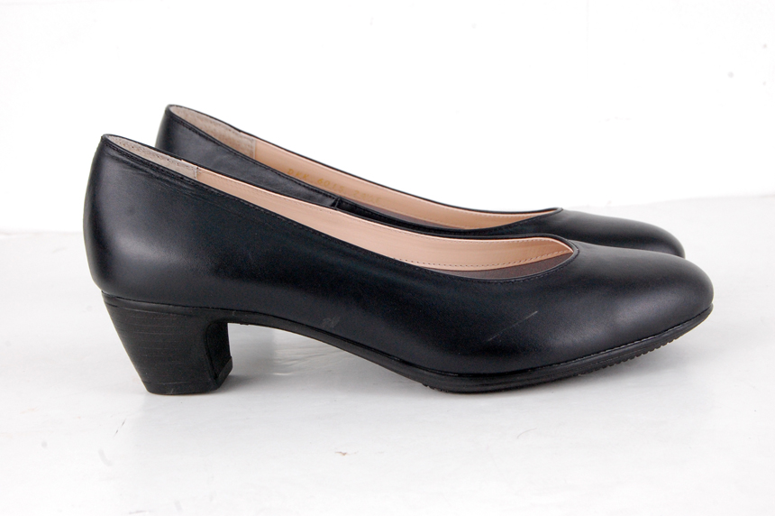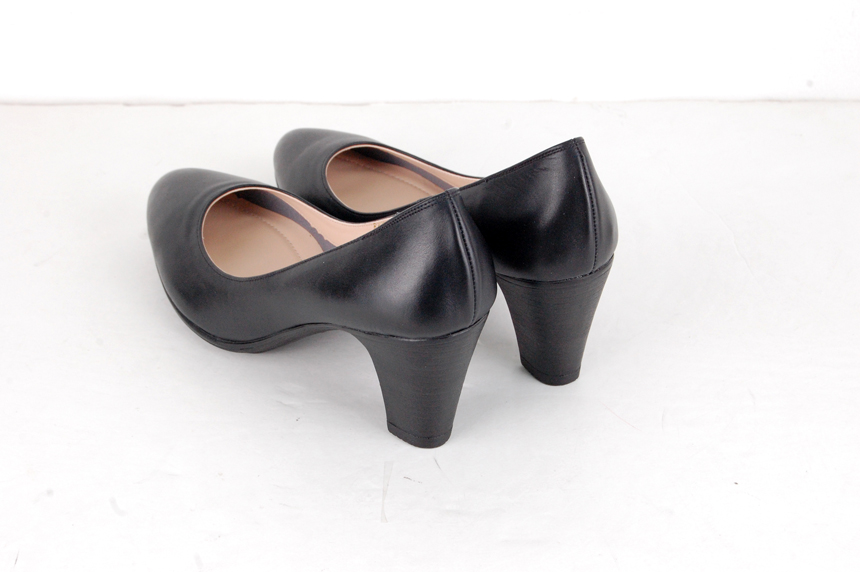 Natural Cowhide Women Uniform Interview Shoes Crew Basic Black Middle Heel Pumps Women