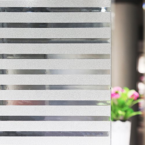 Stripes Frosted Window Film, Anumit Static Cling Window Tint Non-Adhesive Privacy Window Cling Vinyl Anti-UV Window Sticker for Home Office Meeting Rooms Glass Window Doors 17.7 x 78.7 inches