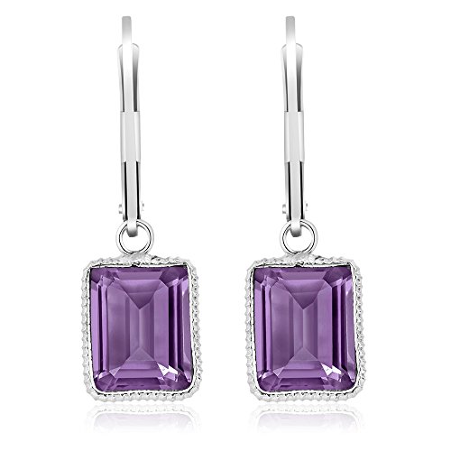 -. Title : 5.00 Ctw 10X8mm Emerald cut Amethyst 925 Sterling Silver Dangle Earrings