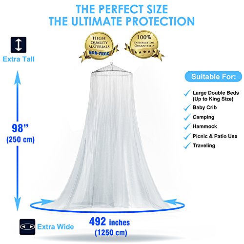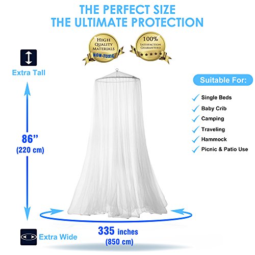 -. Brand : Naturo -. Feature : PERFECT PROTECTION AGAINST INSECTS & MOSQUITOES: Summer is coming and mosquitoes are partying around us! Keep yourself and your family protected with this ultimate mosquito net for bed and for outdoors! Its high quality fabric can guarantee mosquito free nights and 100% eco-friendly soft touch around you! No chemicals added! Being washable and lightweight will facilitate its cleaning process and you can take it with you everywhere you go! / EASY TO USE & HASSLE FREE INSTALLATION - INDOORS AND OUTDOORS: Install this mosquito repellent net without breaking a sweat! You can use it indoors or even outdoors while camping! It has a comfortable entrance and as you open it you can conveniently enter and then close the net! Easy peasy, right? This safety mosquito screen not only will keep the mosquitoes away, but can also offer you romantic nights in your bedroom or under the stars! / 2 100% NATURAL MOSQUITO REPELLENT BRACELETS BONUS: Do you feel like using some extra protection? No worries there. We got you covered! 2 extra mosquito repellent wristbands for you and your friend. The mosquito repellent bracelet is deet free and made from 100% pure and natural essential oil. Totally safe for you and your children. Up to 250 hours of protection! Let your kids play in the park without any blood sucking creatures lurking! / HANGING KIT / STORAGE BAG / E-BOOK & 100% SATISFACTION GUARANTEE: We here at NATURO have the customers' best interest at heart! That is why, we offer you the ultimate set that includes the mosquito net, 2 mosquito repellent bracelets, a full hanging kit (includes wall mounts and rope) and all these nice and tidy in a fine carrying bag. Last but not least you will get an E-book "Camping & Outdoor Recipes" and our 100% satisfaction guarantee! / • EXTRA LARGE NET FOR EXTRA SAFETY: Our mosquito net bed canopy is cleverly crafted so as to bear the tiniest holes (225 holes /2 inches) that lets the cool breeze reach you while preventing mosquitoes and other annoying insects from entering while you are enjoying your nap! Plus, it is the largest mosquito net in the market (perimeter=40 fitX98" height). Suitable for any type of bed. Either a king size bed, toddlers bed or a cute mosquito net for crib ! It works no matter where you place it! -. Label : Brilliant Giftz -. Manufacturer : Brilliant Giftz -. ProductGroup : Home -. ProductTypeName : HOME_BED_AND_BATH -. Publisher : Brilliant Giftz -. Studio : Brilliant Giftz -. Title : Round Mosquito Net