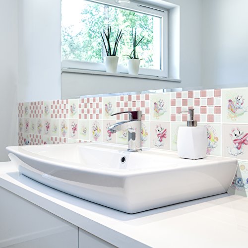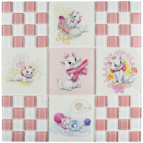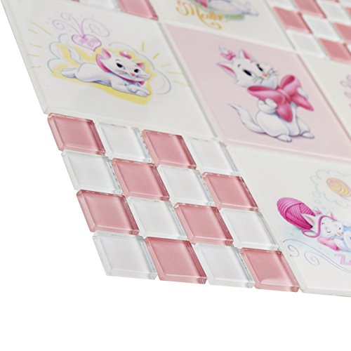 SomerTile WDSCAT22 Disney Aristocats Pink Glass Mosaic Wall Tile, 11.75" x 11.75", 11 Piece