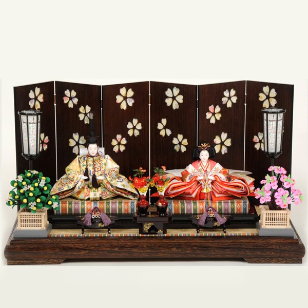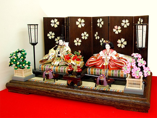 ・台座・屏風等には落ち着いた色目の雛人形セット。
