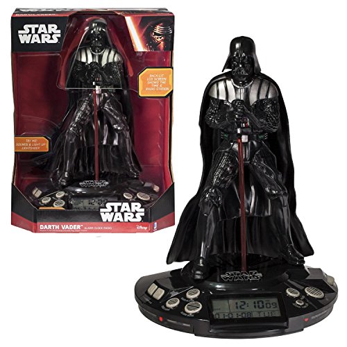 -. Binding : Toy -. Brand : Star Wars -. Color : Multi-colored -. EAN : 0681326152002 -. Feature : Showcases the time, date, radio station and alarm mode information for easy use / The alarm clock works with a wall adapter or 3 LR6 (AA) batteries; both included / Alarm features Darth Vader sounds and light-up saber -. IsAdultProduct : 0 -. Label : Jazwares Domestic -. LegalDisclaimer : Brand New in its original box. Should you have any questions, please feel free to message me. -. Manufacturer : Jazwares Domestic -. Model : 15200 -. MPN : 15200 -. PackageQuantity : 1 -. PartNumber : 15200 -. ProductGroup : Toy -. ProductTypeName : TOYS_AND_GAMES -. Publisher : Jazwares Domestic -. ReleaseDate : 2015-09-04 -. Studio : Jazwares Domestic -. Title : Star Wars Darth Vader Alarm Clock -. UPC : 681326152002 -. Warranty : 90 day warranty against manufacturer defects