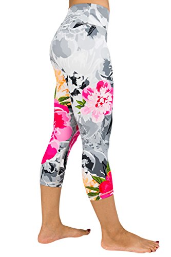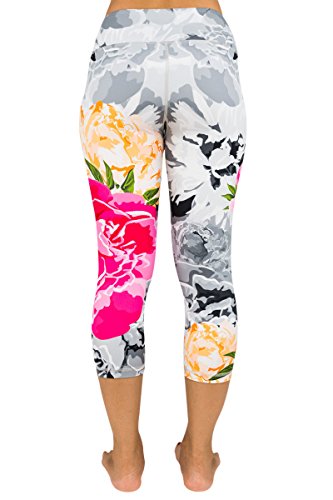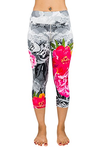 Floral Divergence Women's Printed Capri Cropped Leggings for Yoga, Pilates or Workout by Chandra Yoga & Active Wear