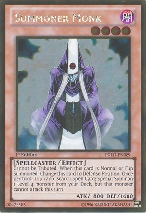 -. Binding : Toy -. Brand : Yu-Gi-Oh! -. Edition : 1st -. Feature : A single individual card from the Yu-Gi-Oh! trading and collectible card game (TCG/CCG). / This is of Gold Rare rarity. / From the Premium Gold set. / You will receive the 1st Edition version of this card. -. IsAdultProduct : 0 -. ItemPartNumber : PGLD-EN089 -. Label : Konami -. LegalDisclaimer : A single individual card from the Yu-Gi-Oh! trading and collectible card game (TCG/CCG). This is of Gold Rare rarity. From the Premium Gold set. You will receive the 1st Edition version of this card. -. Manufacturer : Konami -. Model : NA -. MPN : LYSB00J7YFKY6-TOYS -. PackageQuantity : 1 -. PartNumber : LYSB00J7YFKY6-TOYS -. ProductGroup : Toy -. ProductTypeName : TOYS_AND_GAMES -. Publisher : Konami -. Studio : Konami -. Title : Yu-Gi-Oh! - Summoner Monk (PGLD-EN089) - Premium Gold - 1st Edition - Gold Rare