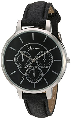 Geneva Women's GV/1013BKBK Silver-Tone and Black Strap Watch