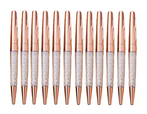 MengRan Rose Gold Pen Diamond Crystal Ballpoint Pens (Pack of 12)(rose gold)