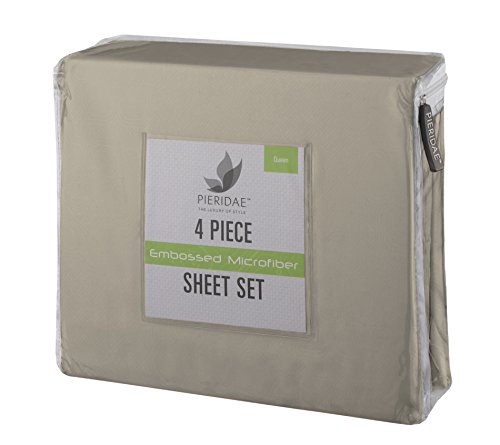 Brushed Embossed Microfiber Bed Sheet Set By Pieridae - Hypoallergenic, Fade and Wrinkle Resistant - 4 Pc Sheet Set - Taupe, Queen