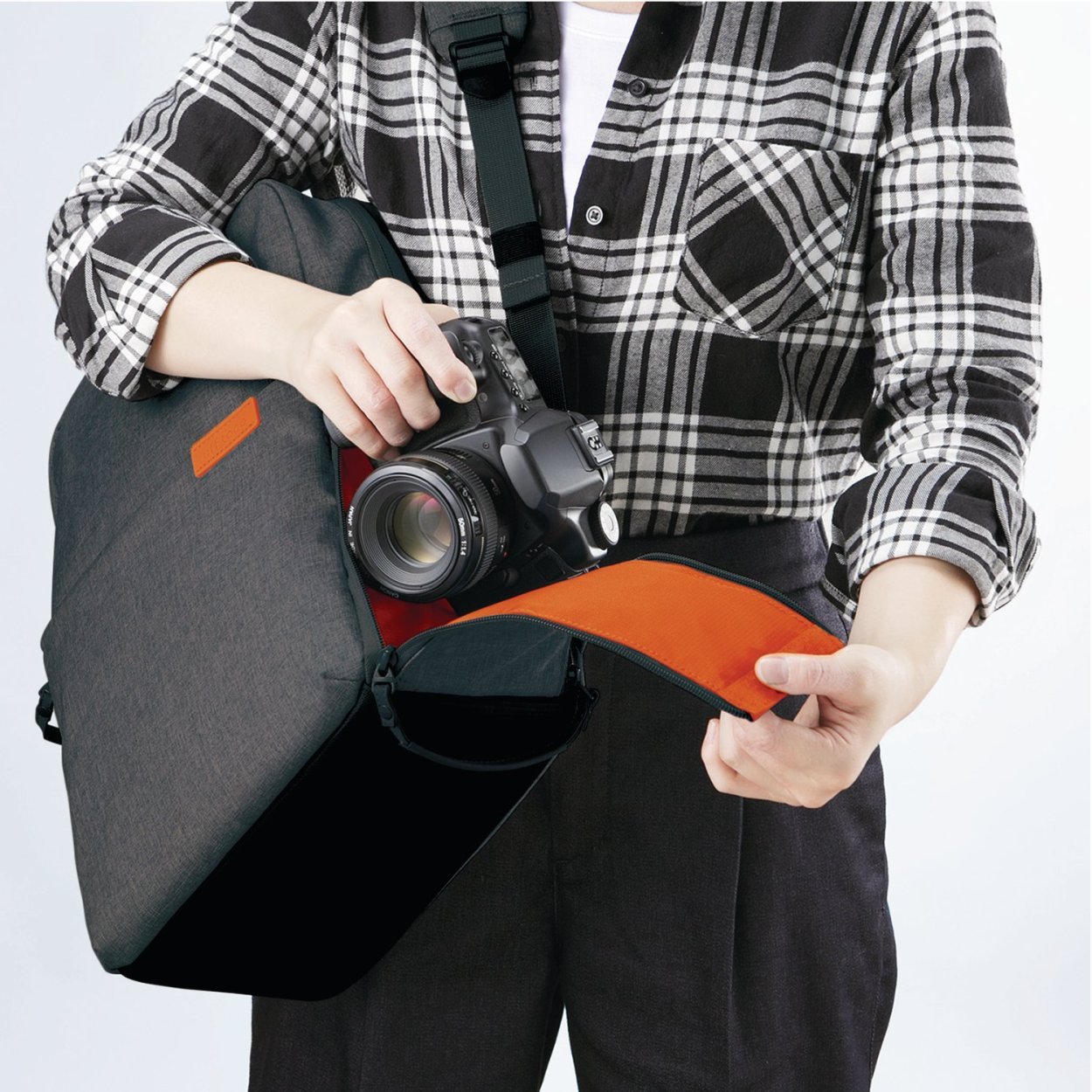 ■ Double fastener which is easy to put in and go out is adopted as a camera exclusive storage opening.