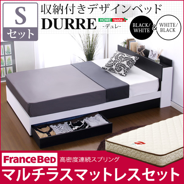 収納付きデザインベッド【デュレ-DURRE-(シングル)】(マルチラススーパースプリングマットレス付き)