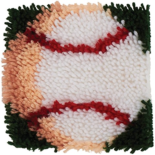 SPINRITE-Latch Hook Kit. These extra shaggy rugs are wonderfully lush and can be made to fit any decor motif. The possibilities are astounding you can use them on the floor wall sofa bed window or even make them into pillows and seat cushions. A wonderful family project! This package contains a color coded canvas pre-cut rug yarn (100% acrylic) a chart and illustrated instructions. Hook tool and binding are not included. Finished Size: 8x8 Inch. Design: Baseball. Made in USA.Feature