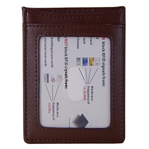 -. Binding : Apparel -. Brand : Stop ID Thief -. Department : mens -. Feature : Made from Genuine Fine Grain Leather. / Measures: 4x3x0.8 inch, fits nicely in your front pocket. Comes with 3 card slots, 1 larger slots and an I.D. holder / MAGNET MONEY CLIP, HOLD YOUR MONEY ALL THE TIME-- Assemblied by Rare Earth Magnets, the strongest type of permanent magnets, hold on to your cash, never lost them. / RFID Blocking Wallet: Tested for 13.56 MHz Frequency in which the credit cards operate.125 KHz Proximity Cards, RFID signals are NOT blocked / Comes with a 1 year replacement guarantee -. ProductGroup : Apparel -. ProductTypeName : ACCESSORY -. Size : One Size -. Title : RFID Blocking Magnetic Money Clip Front Pocket Slim Minimalist Wallet