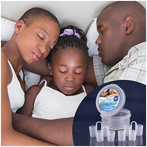 -. Binding : Health and Beauty -. Brand : EasySleep Pro -. Feature : Nasal inserts guard against breathing blockage- no more sleeping alone on the living room sofa! / Four sizes ensure comfortable, secure fit. Easy to clean and re-use, store in free travel case. / Unique cone clip made from safe, medical grade silicone. Best relief from noisy nights! / Plugs are nearly invisible, so comfortable that you and your family won't even notice. / Simple resolution better than strips, treatments, headgear or appliances. 100% Guaranteed! -. IsAdultProduct : 0 -. Label : Veluxio Naturals -. Manufacturer : Veluxio Naturals -. ProductGroup : Health and Beauty -. ProductTypeName : HEALTH_PERSONAL_CARE -. Publisher : Veluxio Naturals -. Studio : Veluxio Naturals -. Title : EasySleep Pro Stop Snoring Solution Nose Vent Devices Set