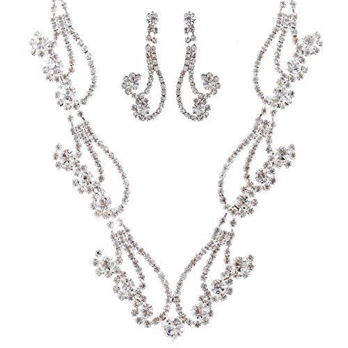 -. Title : ACCESSORIESFOREVERブライダルウェディングプロムジュエリーセットネックレスクリスタルラインストーンCurlyデザインシルバー