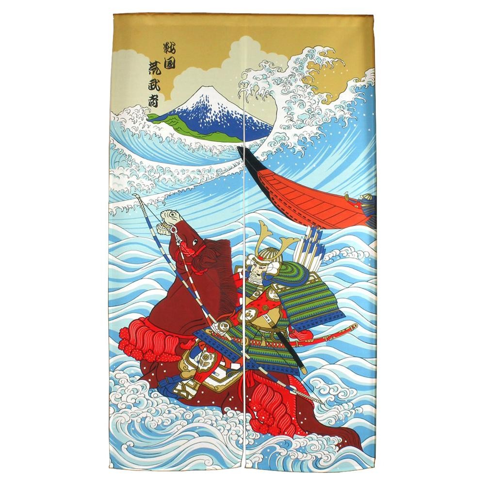 光沢感のある浮世絵柄ののれんです。センター部分は最初からカットをして縫製しているので、中が割れています。 製造国:日本 素材・材質:ポリエステル100% 商品サイズ:85×150cm 仕様:洗濯機の使用:不可 ※サプライヤー直送品 ご注文後3~4営業日後の出荷となります【商品名】光沢感のある浮世絵のれん SAMURAI 幅85×丈150cm 14-147
