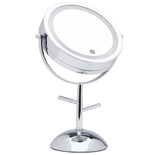 Mirrorvana 7-Inch Dual-Sided Magnifying LED Lighted Vanity Makeup Mirror with Jewelry Hooks, 1X and 5X Magnification