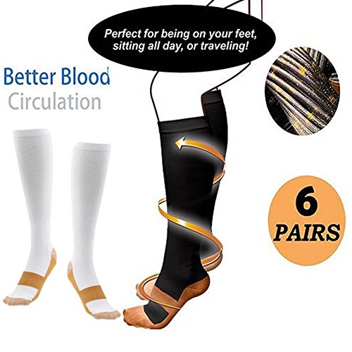Unisex Copper-Infused Stress Relieving Anti-Odor Compression Socks ( 6-Pack ) (White Copper Socks)