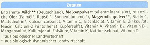 Magermilch*, Magermilchpulver*, pflanzliche Öle (Palmöl*, Rapsöl*, Sonnenblumenöl*), Maltodextrin*, Molkenpulver* teilentmineralisiert, Stärke*, Vitamine und Mineralsalze laut Gesetz.