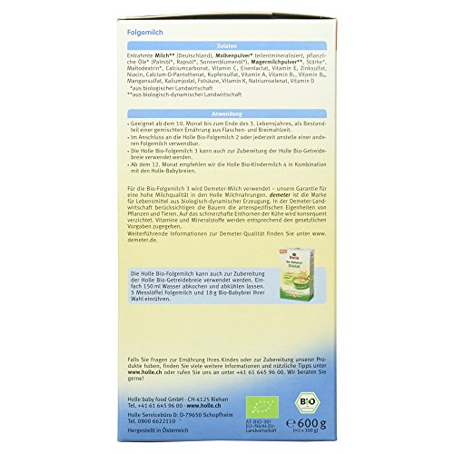 Die Holle Bio-Folgemilch 3 kann im Anschluss an jede andere Folgenahrung gegeben werden