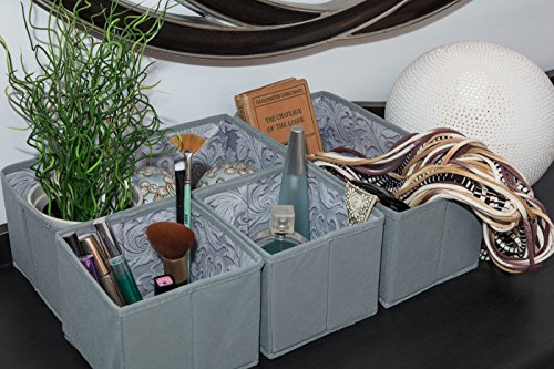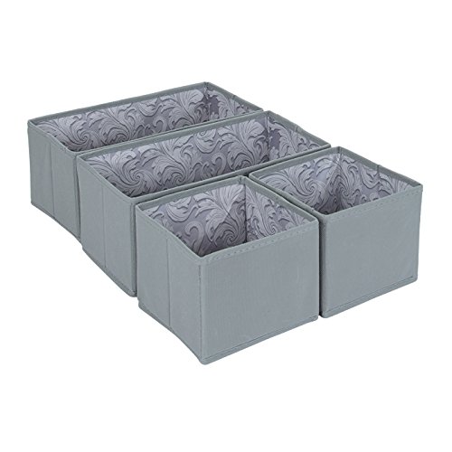 SbS Fabric Dresser, Drawer, Closet Organizer Boxes Cubes Bins. Store socks ties underwear gloves bras tights bibs and diapers - Spanish Gray, Feather Leaf Interior - 4 Pack (2 Medium, 2 Small)