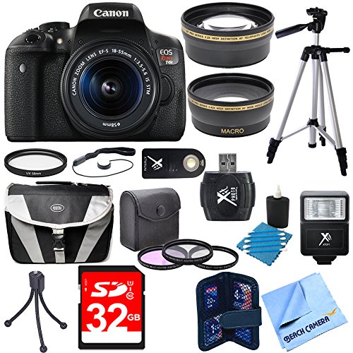 Canon EOS Rebel T6i Digital SLR Camera w/ EF-S 18-55mm IS STM Lens Bundle w/ 18-55mm Lens, 32GB Memory Card, Gadget Bag, Mini Tripod, Full Size Tripod, Filter Kit, Card Reader and Much More!